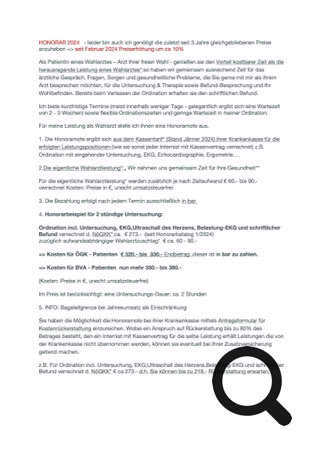 Honorar  seit  2024 unverändert - Stand 1. 1. 2026