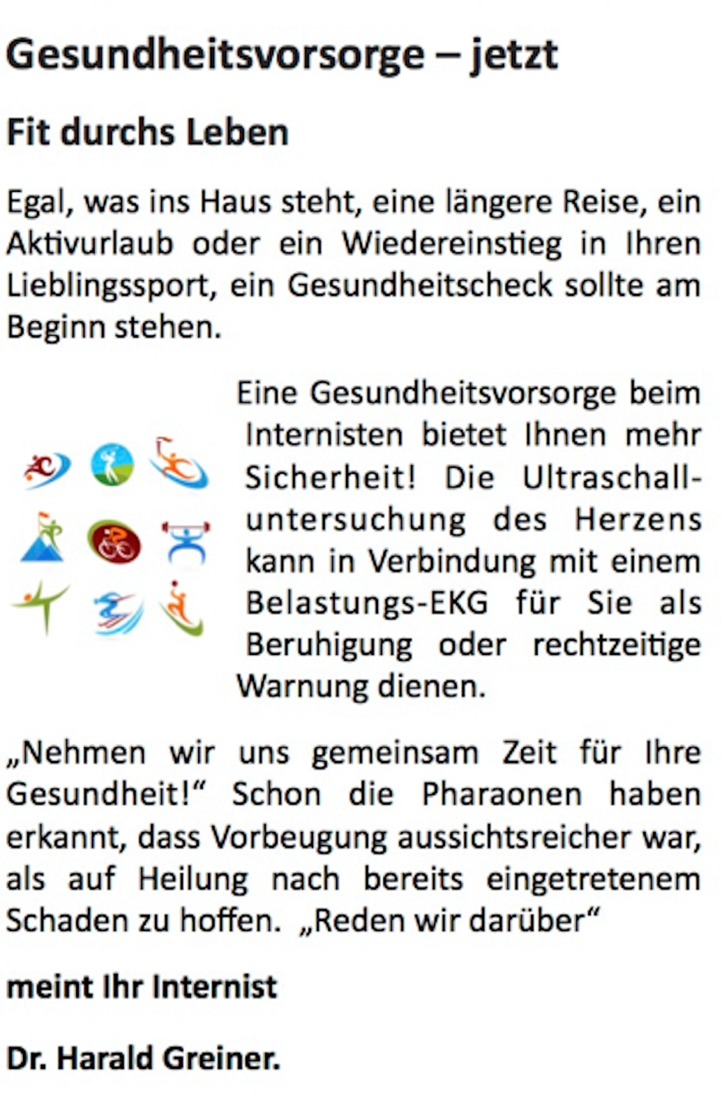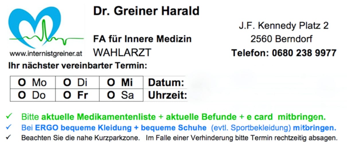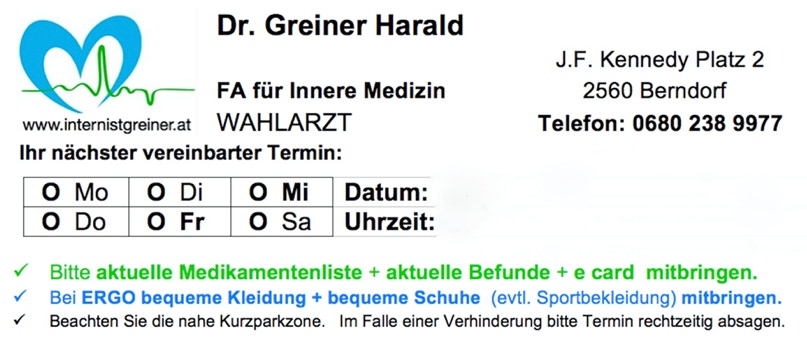 Tel : +43 (0)680 2389977 Mail: office@internistgreiner.at